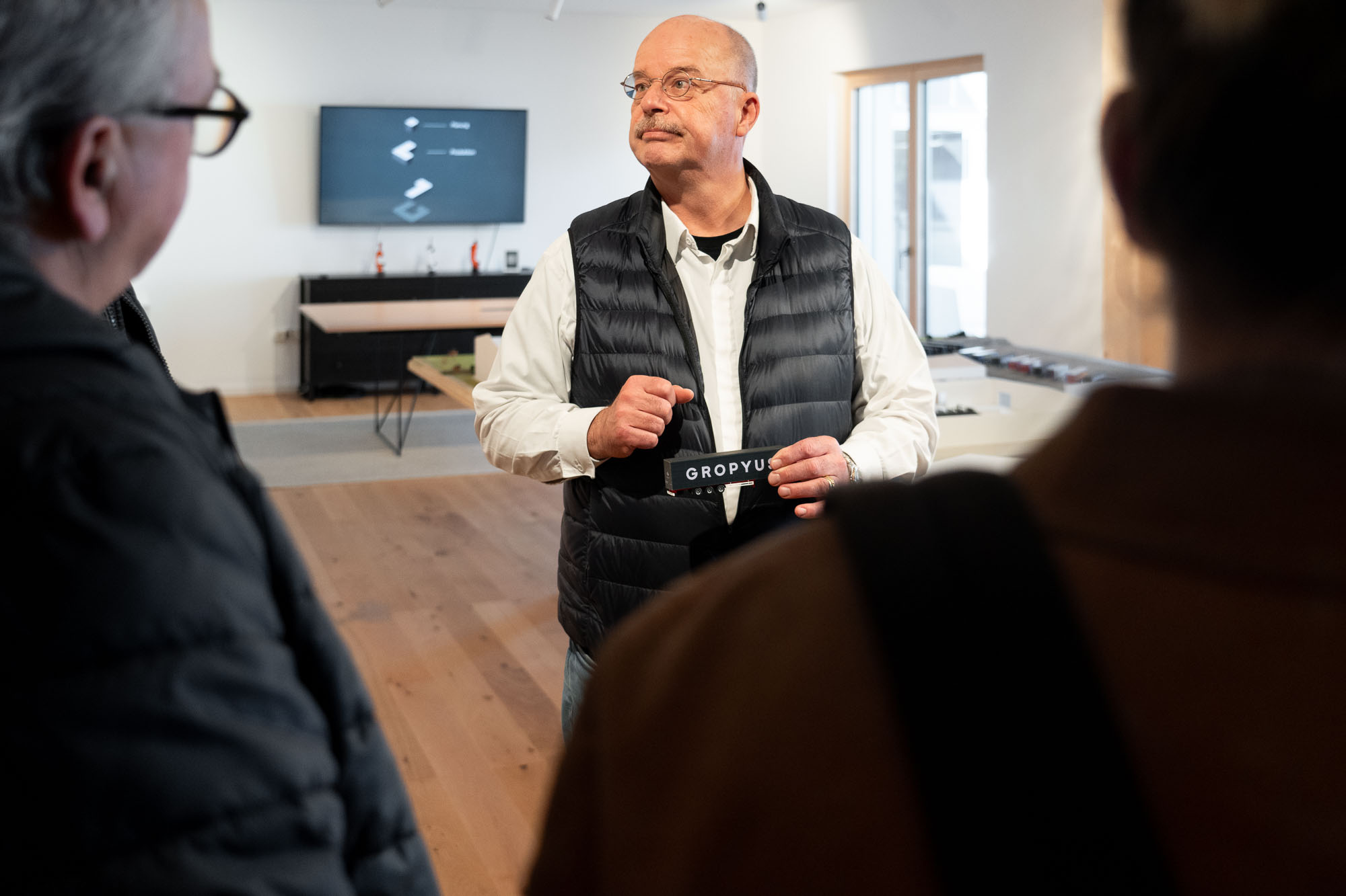 Nach so vielen neuen Eindrücken stärkten wir uns bei einem gemeinsamen Mittagessen und waren bereit für den nächsten Programmpunkt. Mit neuer Energie ging es weiter zur Gropyus Engineering GmbH & Gropyus Production Richen GmbH. Dort gab uns Herr Thomas Benedikt Meibert als VP Development Center & Smart Factory Managing Director persönlich exklusive Einblicke in die digitalisierten und präzise durchorganisierten Produktionsabläufe und die faszinierende Welt des modularen Holzbaus.