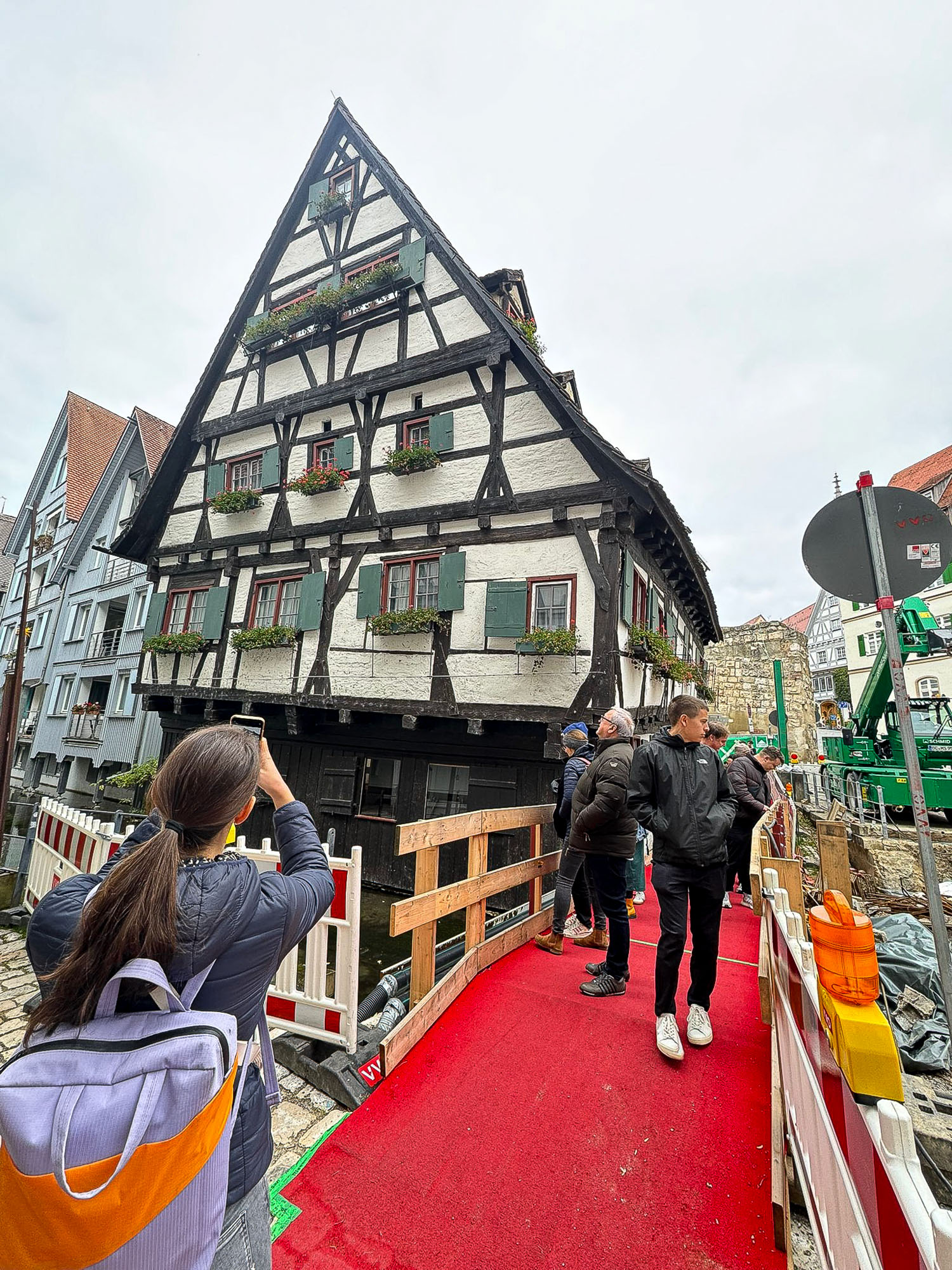 Ein Zwischenstopp führte uns zur markanten Pyramidenbibliothek, deren Glasfassade wie ein städtisches Statement zwischen den Giebeldächern steht. Fast genauso spektakulär – wenn auch deutlich schiefer – präsentierte sich das mittelalterliche, denkmalgeschützte „Schiefe Haus“, mit bewegter Geschichte, das beinahe dem Rückbau zum Opfer fiel. Glücklicherweise entschied sich ein Architekt für die Sanierung – ein Lehrstück für Erhalt statt Abriss, das heute ein kleines Hotel beherbergt. Seit dem gilt das Fachwerkgebäude im malerischen Fischerviertel, als das schiefste Hotel der Welt, das sogar im Guinness-Buch der Rekorde zu finden ist.