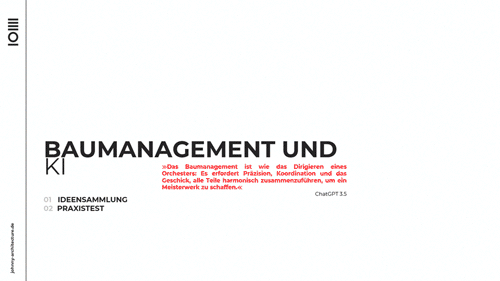 Für uns steht fest: Die Digitalisierung der Baubranche ist unaufhaltsam. Daher sind wir fest entschlossen, diese Transformation aktiv mitzugestalten und die Potenziale von Künstlicher Intelligenz voll auszuschöpfen. Wir werden die Entwicklungen im Bereich KI kontinuierlich überprüfen, um unsere Arbeitsabläufe zu optimieren und innovative Lösungen für unsere Kunden zu schaffen.