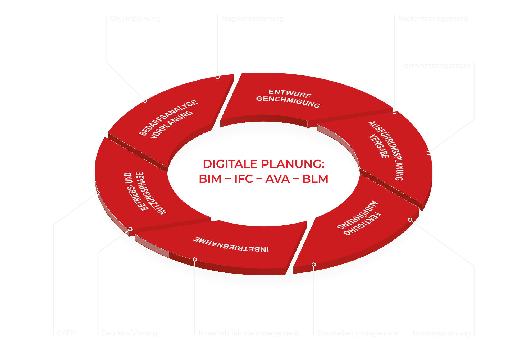 Wir sind überzeugt, dass nur mit dem vollständigen Einsatz von BIM – Building Information Modeling – die Ziele für ein nachhaltiges Bauwesen, die den gesamten Lebenszyklus eines Bauwerks abdecken, zu erreichen sind. Zirkuläres Bauen, dynamische TGA-Analysen, Einbindung von KI und so viel mehr – alles baut auf solide Gebäude- und Datenmodelle auf.