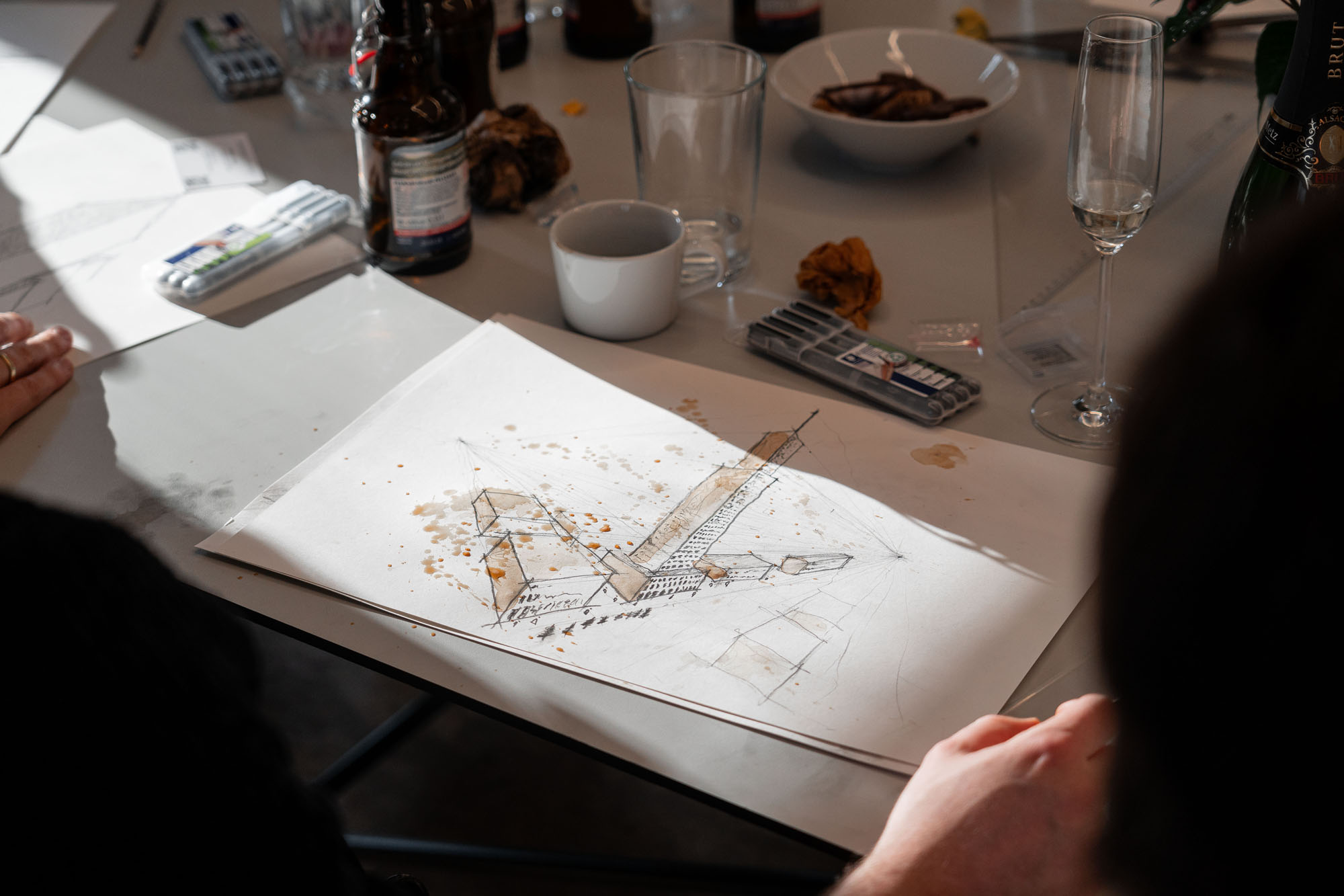 Wir haben Blei geleckt! In unserer voll digitalen Arbeitswelt (auf die wir an sich stolz sind), in der Stifte durch Mausklicks ersetzt werden, haben wir am vergangenen Freitag genau das Gegenteil getan: Back to the roots! Mit einem inspirierenden Workshop zur perspektivischen Konstruktion und Zeichnen im Team hat uns Svetlana Davina auf eine kreative Reise mitgenommen. Als Architektin und Künstlerin hat sie uns gezeigt, dass auch in der schnelllebigen Architekturwelt ein ruhiger Strich manchmal Wunder bewirkt – und so manch vergessene Talente in unserer Crew wieder zum Leben erweckt.