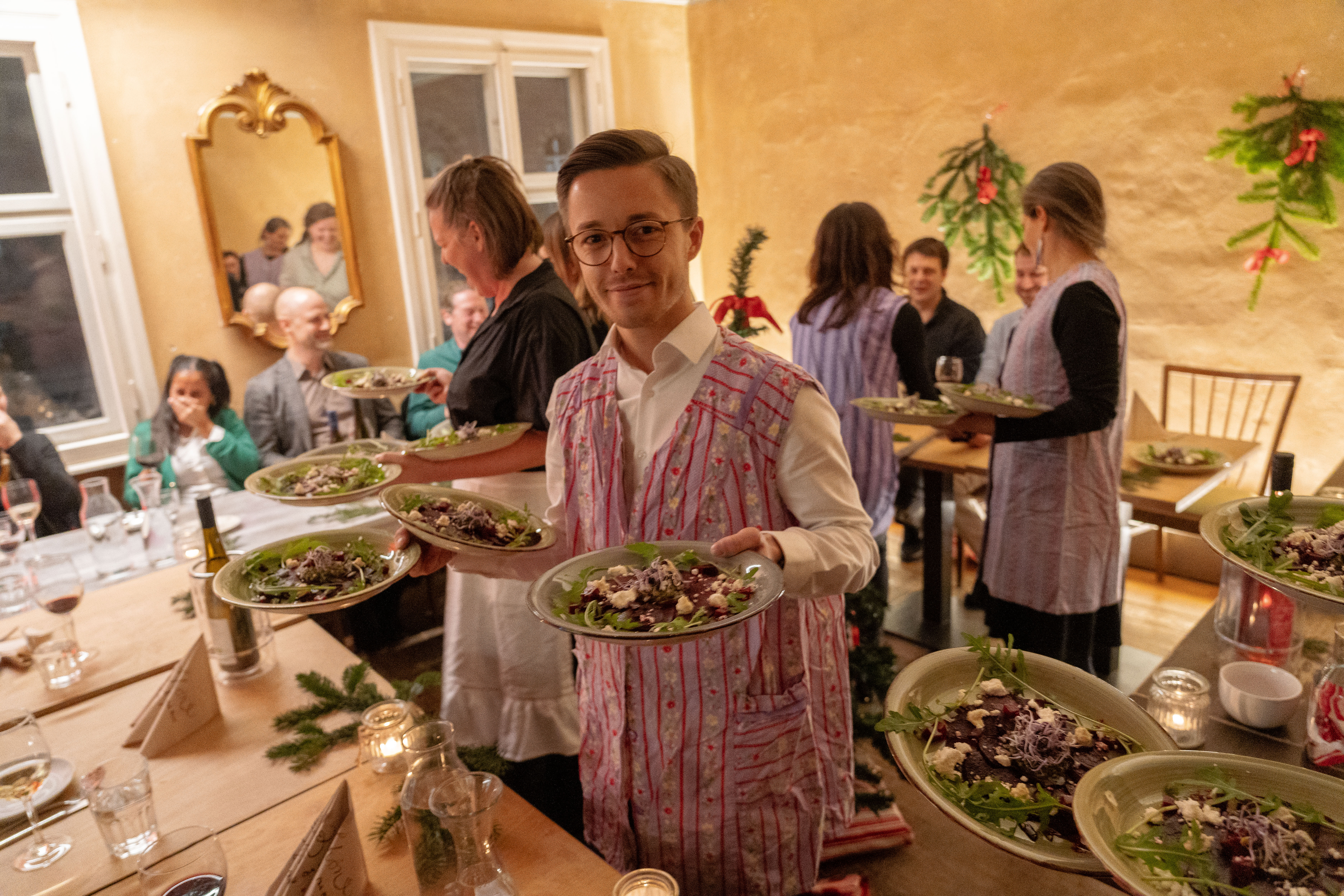 Nach so viel künstlerischem Input durfte natürlich der Genuss nicht zu kurz kommen. Wie auch im vergangenen Jahr war die Kulturküche Karlsruhe unser liebster Ort für ein gemeinsames Dinner-Erlebnis. Das Highlight? Ein 5-Gänge-Menü, das nicht nur kulinarisch, sondern auch poetisch und theatralisch inszeniert und begleitet wurde. Wer hätte gedacht, dass eine Menübeschreibung in Versform so viel Eros tragen kann?