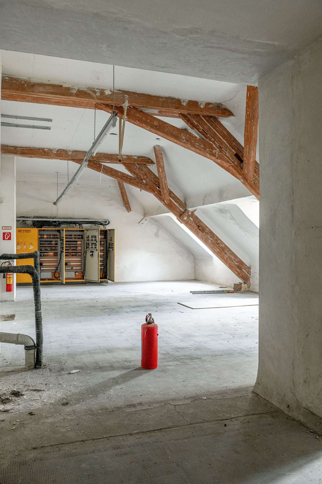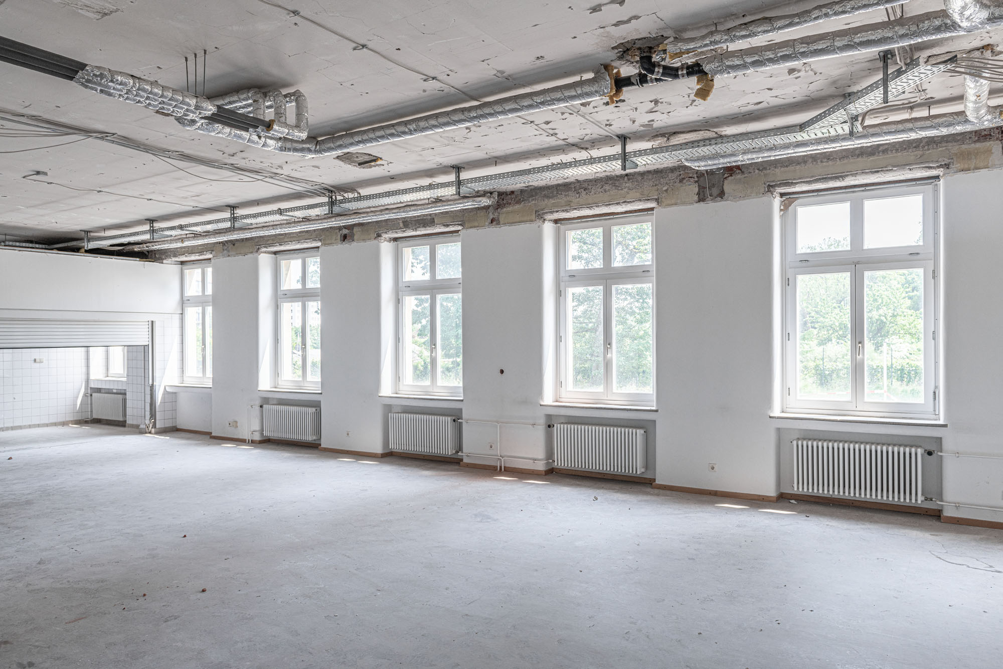 Zunächst werden alle nicht denkmalgeschützten Bauelemente des Kasernengebäudes entfernt. Das historische Gebäude wird von späteren Anbauten freigeräumt und so ergänzt, dass eine symmetrische bzw. die historische Ansicht entsteht. Die drei Eingänge, sowie die Treppenhäuser, die Decken, die tragende Wände und die Hülle des Gebäudes werden erhalten.