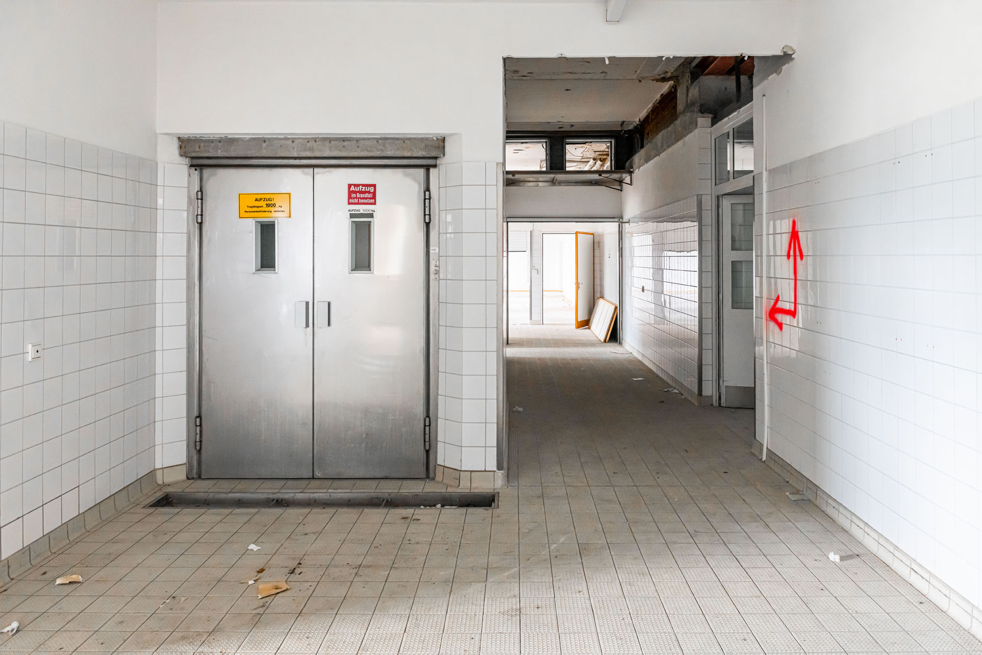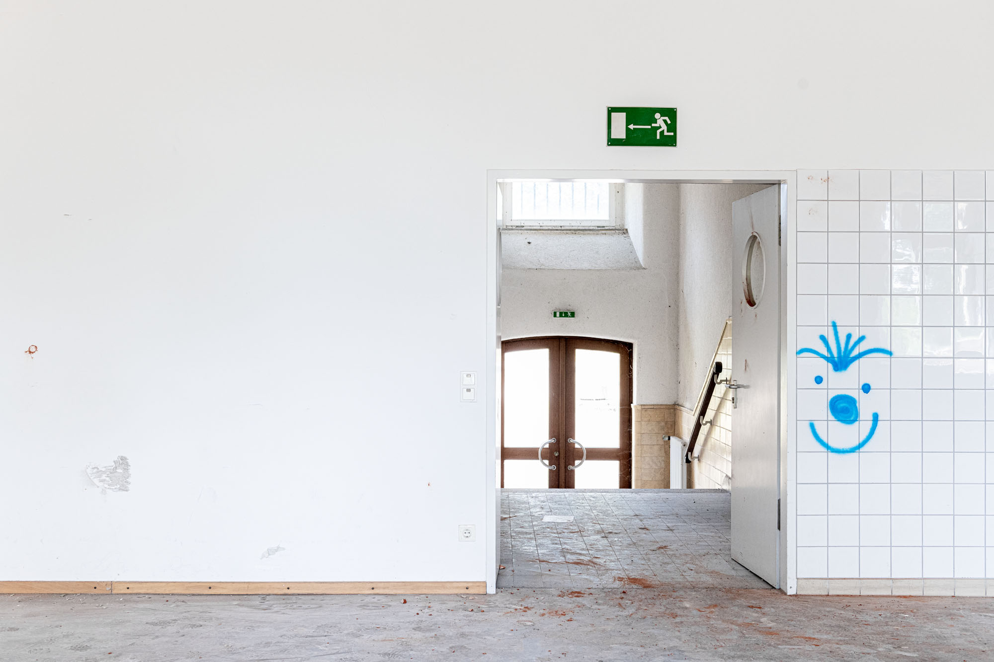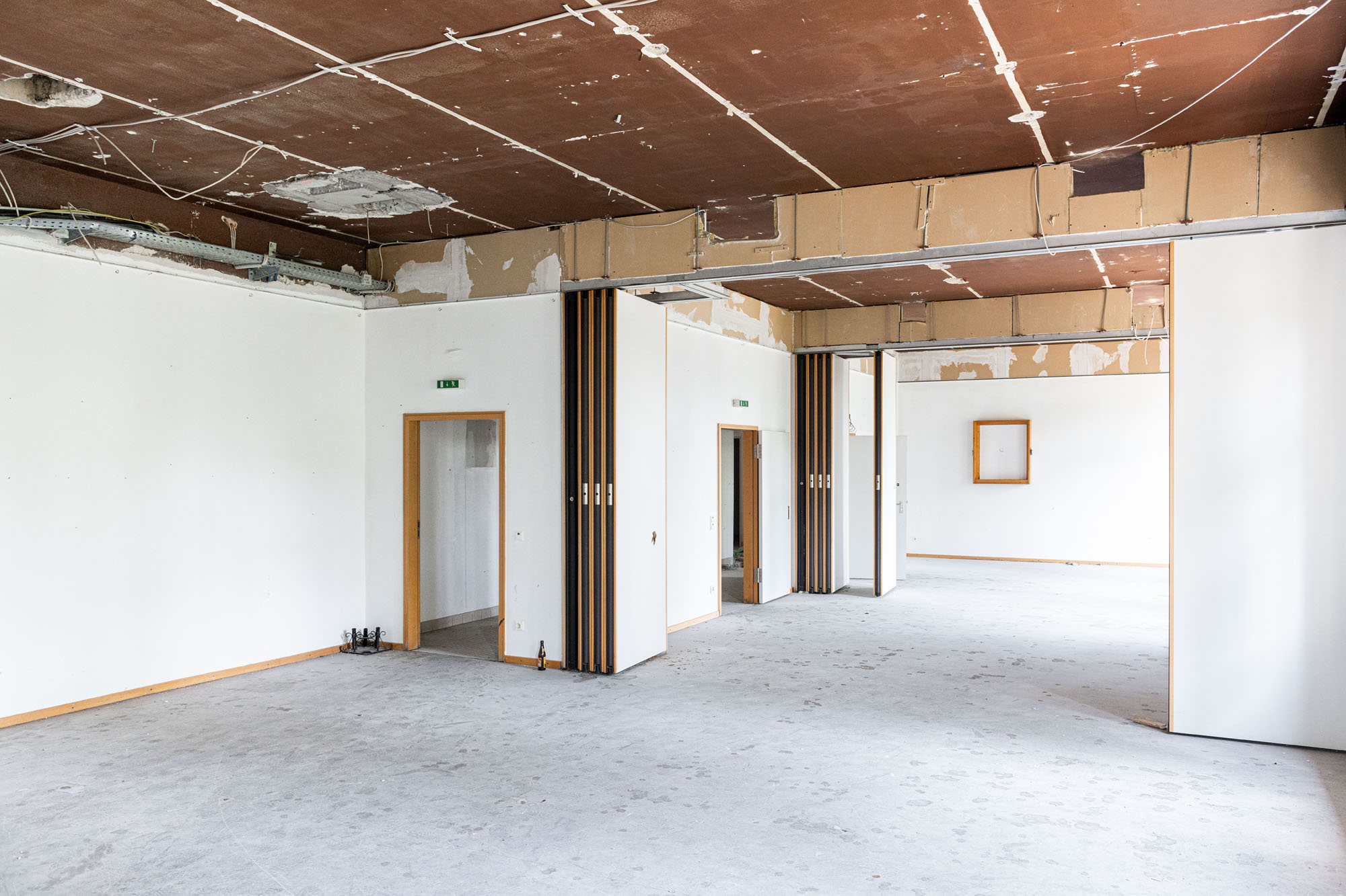 Das historische Gebäude wird entsprechend entkernt und von einer Bunkeranlage sowie späteren Anbauten aus den 70er Jahren befreit, sodass die ursprüngliche Symmetrie und die denkmalgeschützte Hauptansicht wiederhergestellt werden. Erhalten bleiben die drei originalen Eingänge, die Treppenhäuser, Decken und tragenden Wände sowie die Fassadenhülle – im Sinne eines respektvollen Umgangs mit dem Bestand. Die nicht denkmalgeschützten Bauelemente werden vollständig abgebrochen und durch eine funktionsgerechte Neubau‑Ergänzung ersetzt.