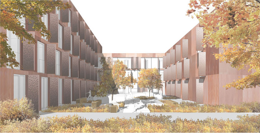 Mit dem Neubau wird durch das Studierendenwerk Karlsruhe die Transformation des Campus als Wohnstandort für Studierende weiterentwickelt. Das Ensemble aus Alt- und Neubau bildet künftig ein städtebauliches wie soziales Rückgrat am Standort. Bereits mit dem Umbau der Mackensen-Kaserne (Bauteil A) wurde ein wichtiges Signal für nachhaltigen Bestandserhalt gesetzt – der Neubau (Bauteil B) ergänzt diesen Impuls durch moderne, zukunftsgerichtete Wohnkonzepte.