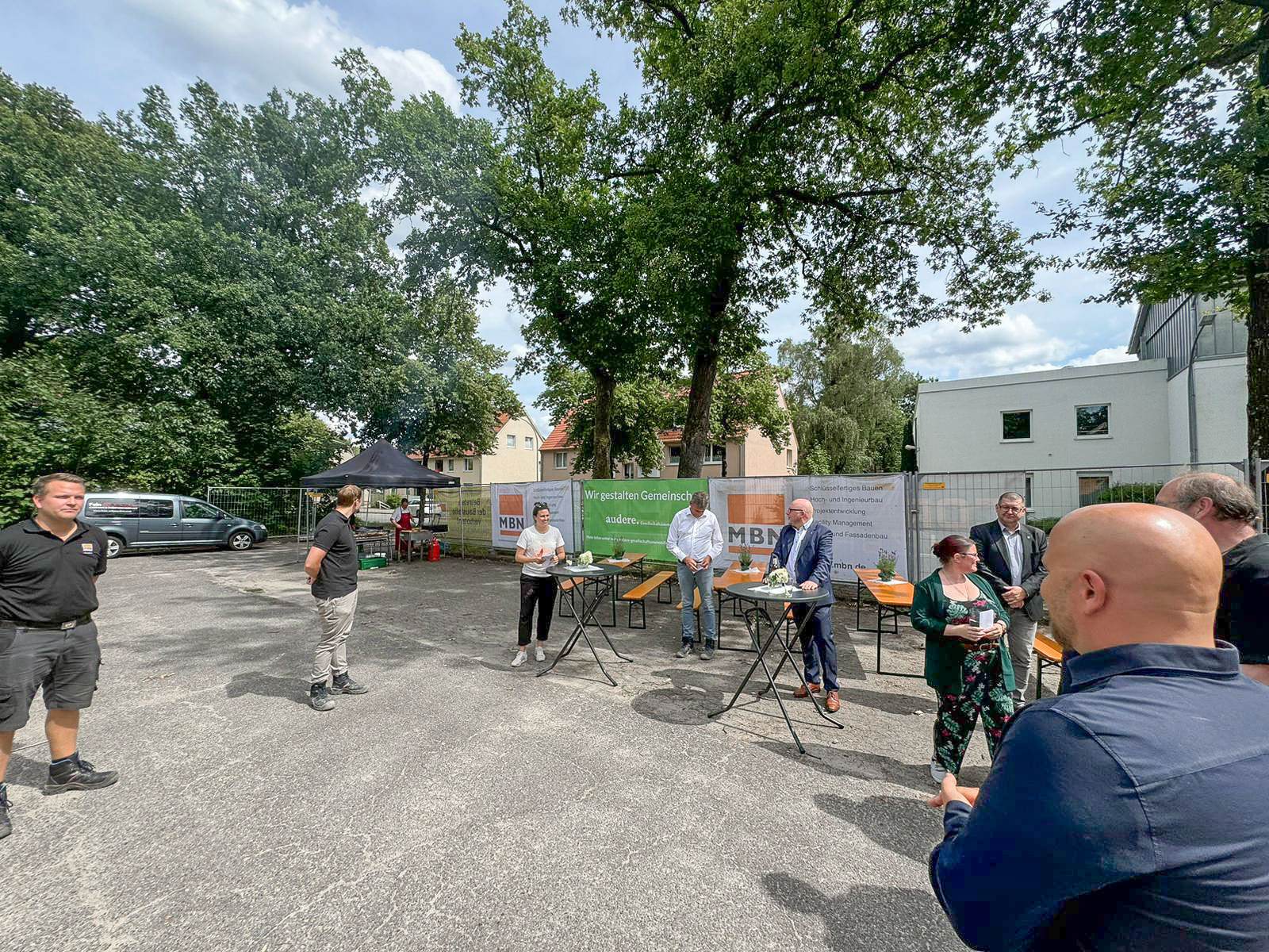 Unsere Kindertagesstätte "Am Hanloh" liegt nordwestlich vom Stadtzentrum zwischen zweckmäßigen Wohnbauten, inmitten eines kleinen, städtischen Parks. Hier werden die Kinder zukünftig weitläufige Außenanlagen mit altem Baumbestand haben.