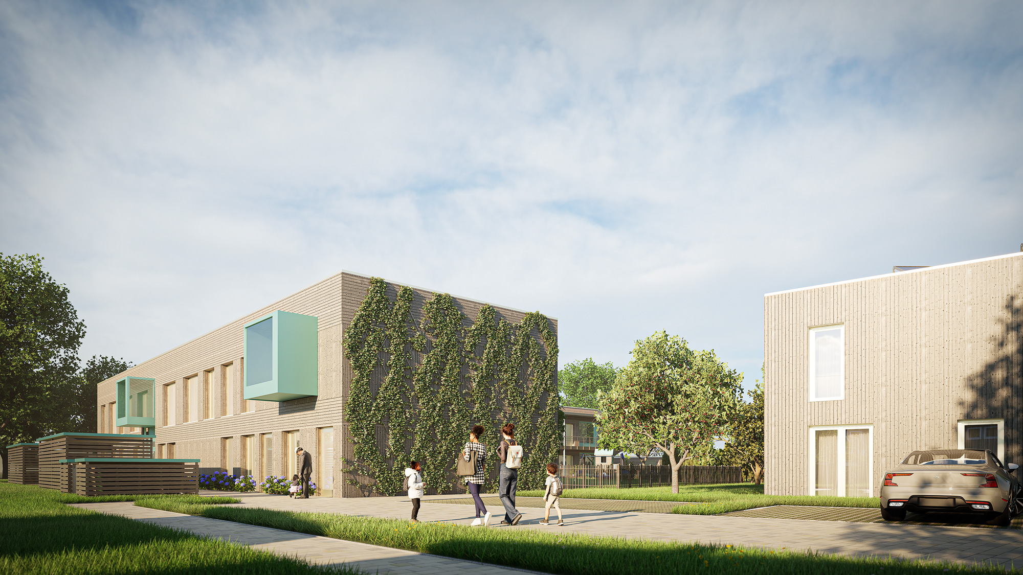 Neubau einer KiTa und drei Doppelhäuser zur Nachverdichtung in einem Wohnquartier in Bremen, Alt-Osterholz. Die KiTa wird als Referenz für wirtschaftliches, klimagerechtes Bauen geplant und gebaut. Hierfür wurde ein integral planendes Team von der Entwicklung bis zur Ausführung zusammengestellt. Ziel ist es durch ein Low-Tech-Konzept, die Wartung- und Instandhaltungskosten für 35 Jahre kalkulierbar zu machen.