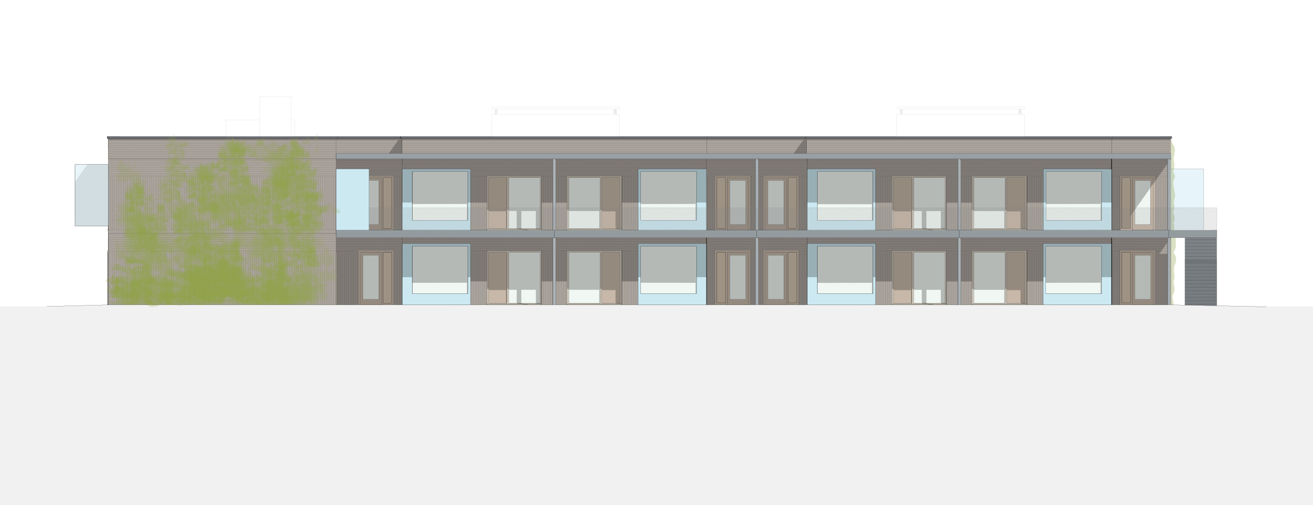 Der Einsatz von klimasteuernden Materialien wie Lehm, Naturfaserdämmung und Holz ermöglichen den Lüftungs- und Klimatisierungsbedarf auf ein Minimum zu reduzieren. Adaptive raumklimatische Anforderungen sind mit den Nutzer:innen zu planen und ermöglichen es so weitgehend auf Klima- und Lüftungstechnik zu verzichten. Der so sehr stark reduzierte Energiebedarf soll weitgehend über die PV-Kollektoren der eigenen Gebäudehülle, in jedem Falle aber klimaneutral gedeckt werden.