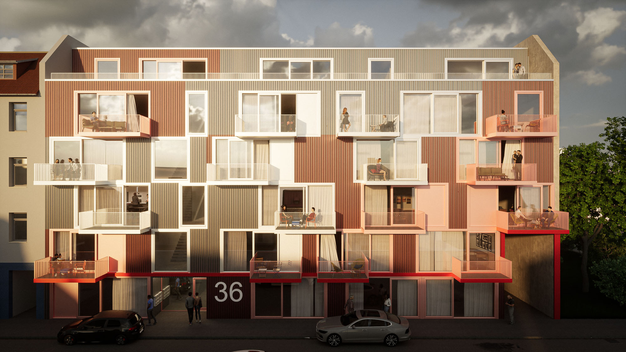 Das Planungsteam von JOHNNY wurde beauftragt, in diesem Kontext einen Wohnungsbau mit 38 Einheiten und einer integrierten KiTa mit vier Gruppen zu planen. Die Wohneinheiten bieten einen gesunden Mix aus 50 % sozialen und 50 % frei finanzierten Wohnungen.