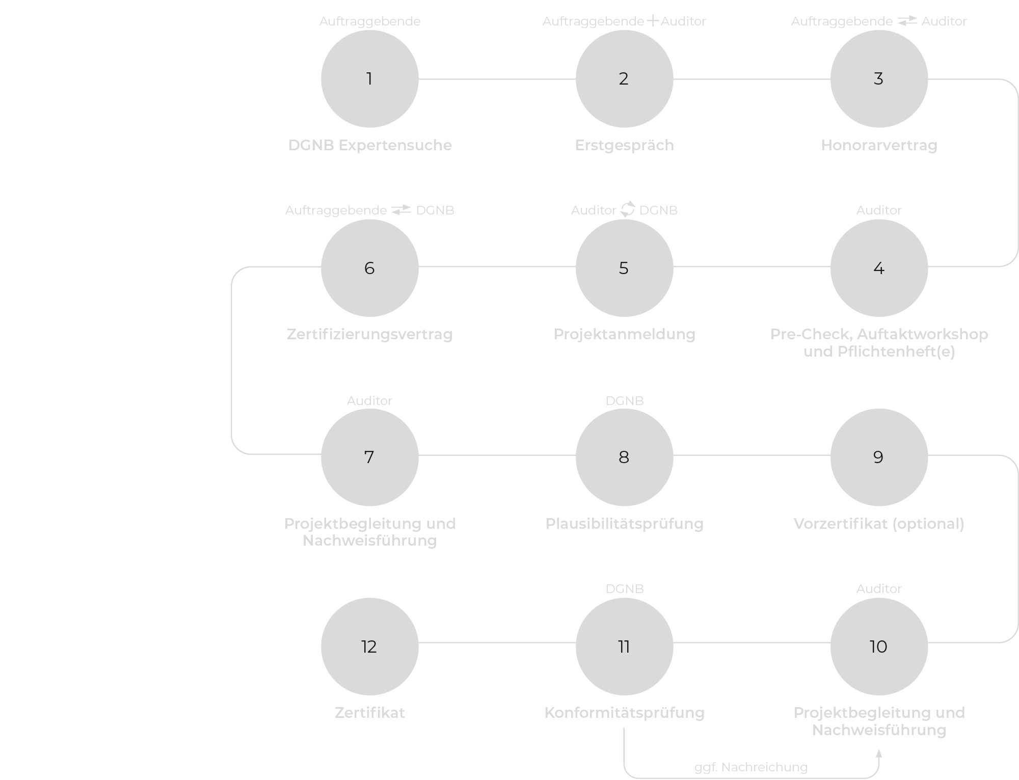 JOHNNY ist Mitglied im DGNB und begleitet mit internen, zertifizierten Auditoren von der Beratung bis zur erfolgreichen Zertifizierung nach DGNB. Auf dieser Grundlage können prozessbegleitend weitere Zertifizierungen, insbesondere nach BNB und QNG erfolgen.